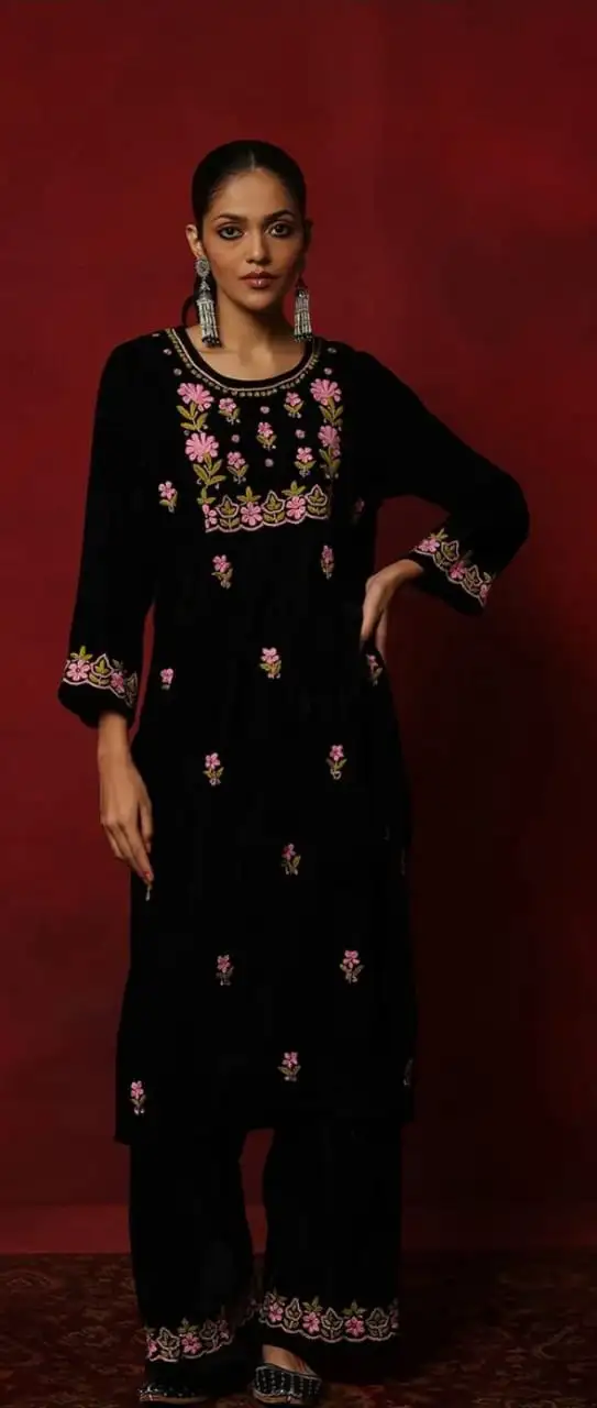 Woollen very soft velvet fabric plazo set
